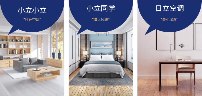 語音控制設(shè)備都有特定的名字,呼叫喚醒完成互動。日立語音控制器特別設(shè)計三個喚醒詞,不同房間有不同的名字,防止語音的誤操作。